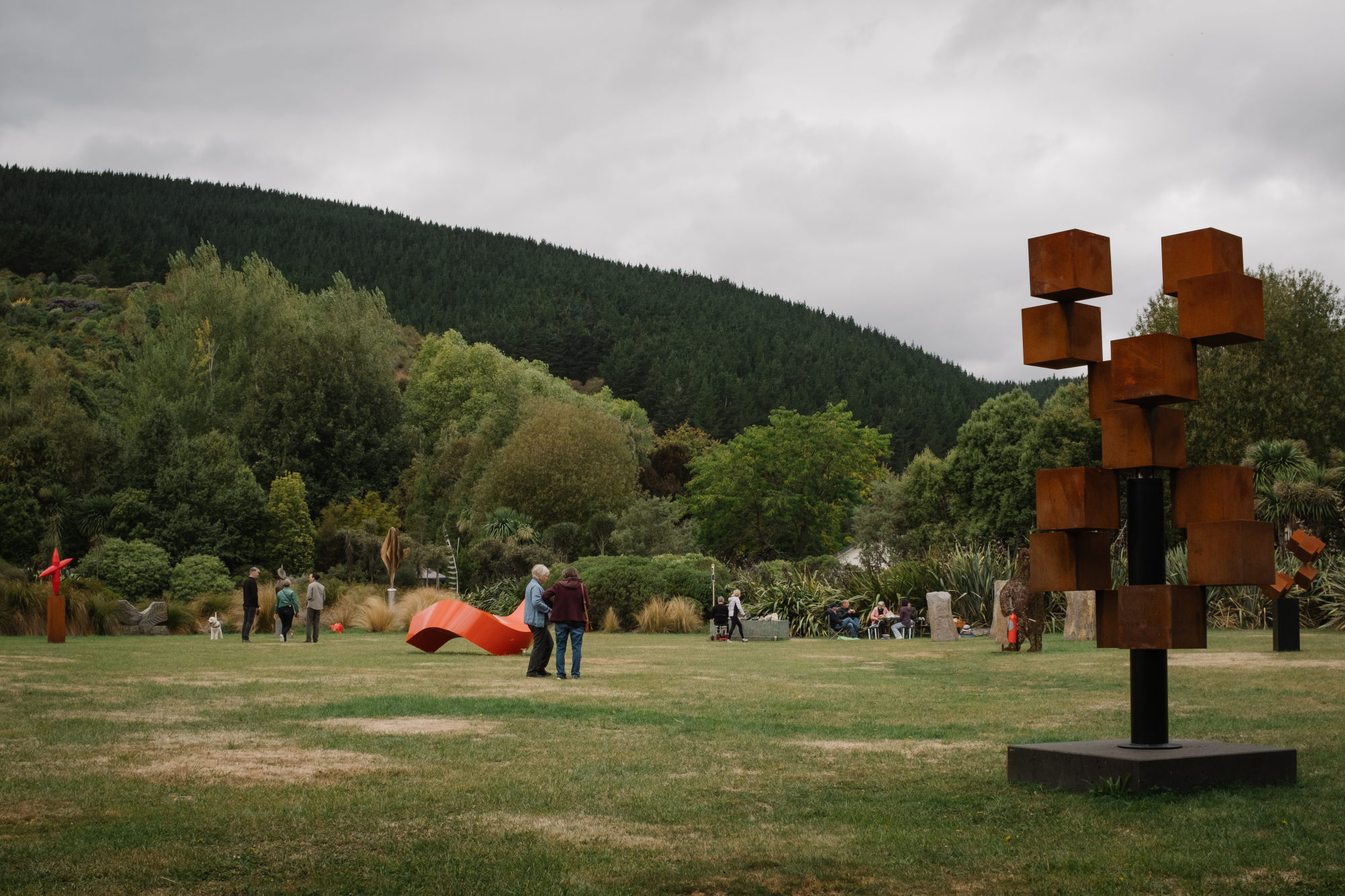 But the sculpture is only one part of the experience. People leave the Garden inspired not just by the sculpture, but also the native plantings and the careful thought put into their arrangement. Flourishing tōtara, mataī, kahikatea, beech, rimu, and other rare or threatened native plants of Canterbury reach across the property in all directions. As told by co-founder Peter Joyce, many visitors say “I enjoyed the sculptures, but I enjoyed the planting even more”.