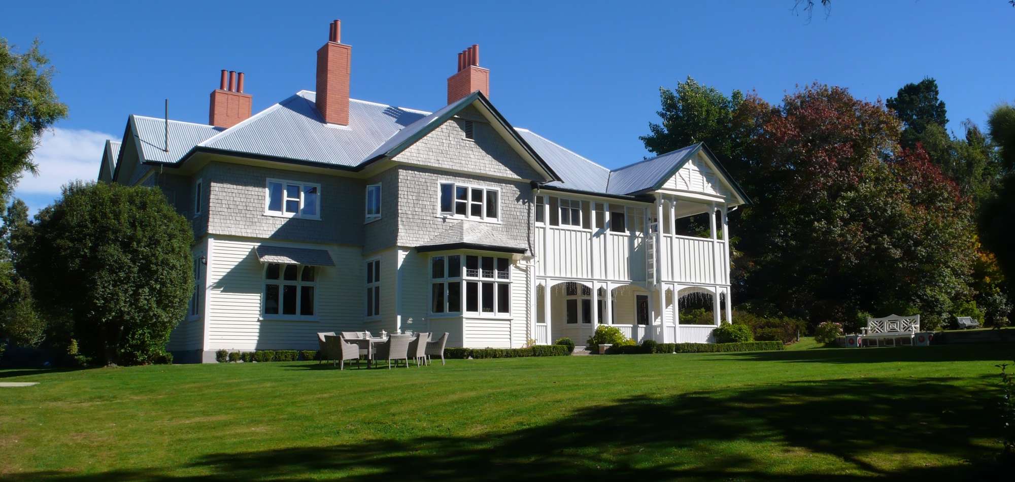 Grand historic homestead in the rolling foothills of the Southern Alps, 45 minutes from Christchurch. Relax in luxury accommodation in an elegant tranquil country setting.
